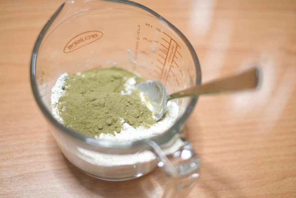 そしてたっぷりのホワイトカオリンと、江田島産のオリーブ葉パウダーを追加します。吸着効果とスクラブ効果で毛穴の汚れをやさしく除去。