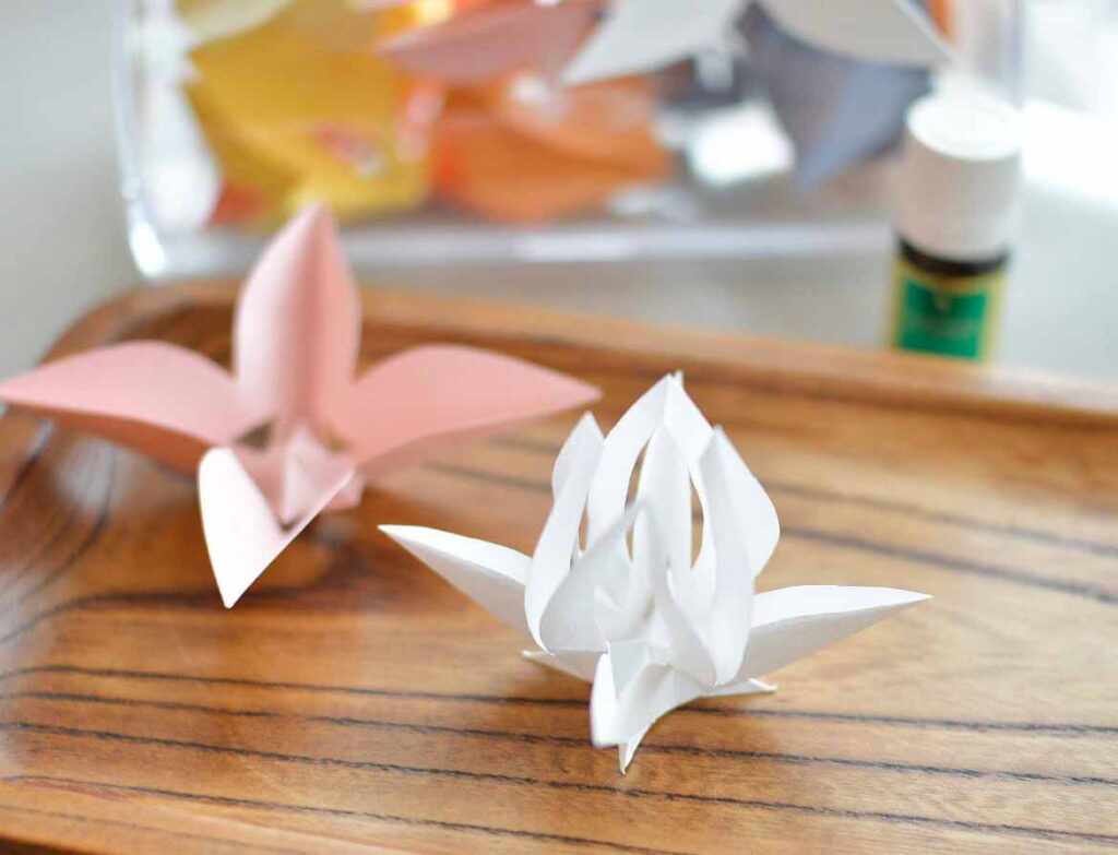 一枚の紙から立体的に作り出す、とてもたくさんの種類の花のことでした。少しいただいてみてみると、直線と曲線がとても美しくて一瞬で魅了されました。
